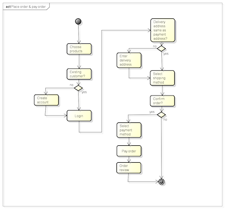These are the activity diagrams for the place order, pay order and track order sequences.